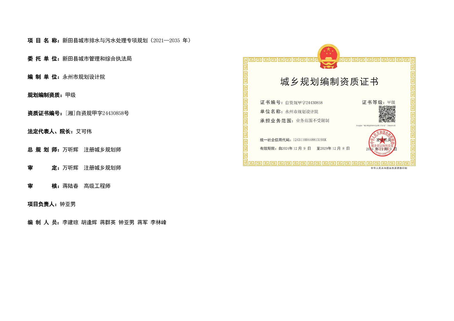 《新田县城区排水与污水处理专项规划(2021-2035年)》