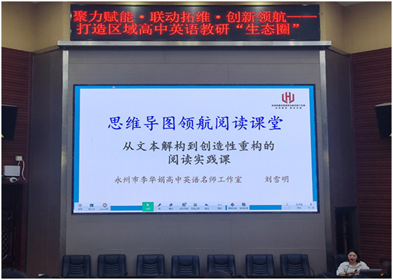 4月19日上午,永州市李华娟高中英语名师工作室的核心成员、新田一中刘雪明老师带来了精彩的案例分享,《思维导图领航阅读课堂——从文本解构到创造性重构的阅读实践课B2U2Besporty,behealthyReading:Abeginner'sguidetoexercise.》为例,课堂设计针对优生群体,巧妙做到源于课本又高于课本,鼓励学生形成自己的观点。刘雪明老师的教学案例展示了独特的教学思路与方法,为阅读教学提供了新的视角,让参会教师们对如何引导学生理解和表达有了更清晰的认识。