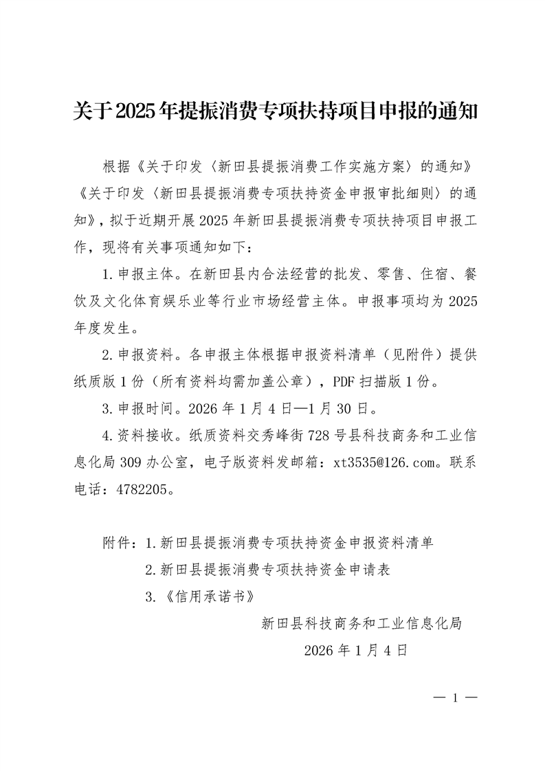 关于2025年提振消费专项扶持项目申报的通知
