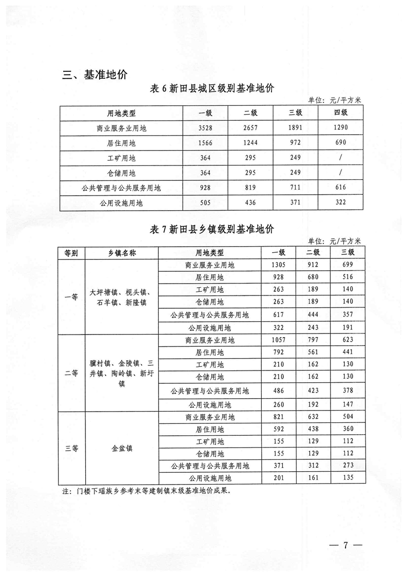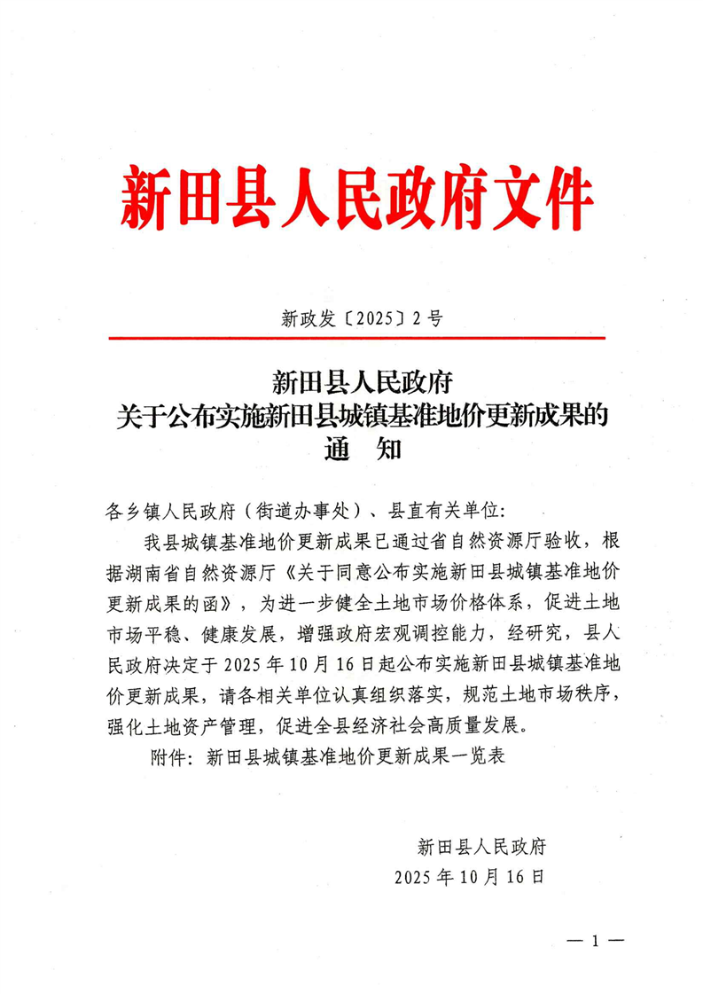 新田县人民政府《关于公布实施新田县城镇基准地价更新成果的通知》