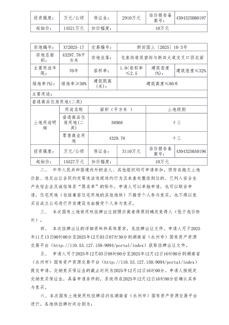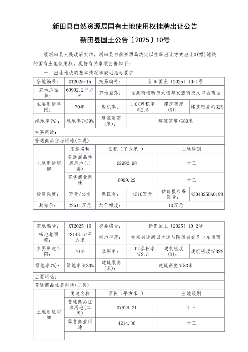 新田县自然资源局国有土地使用权挂牌出让公告新田县国土公告〔2025〕10号