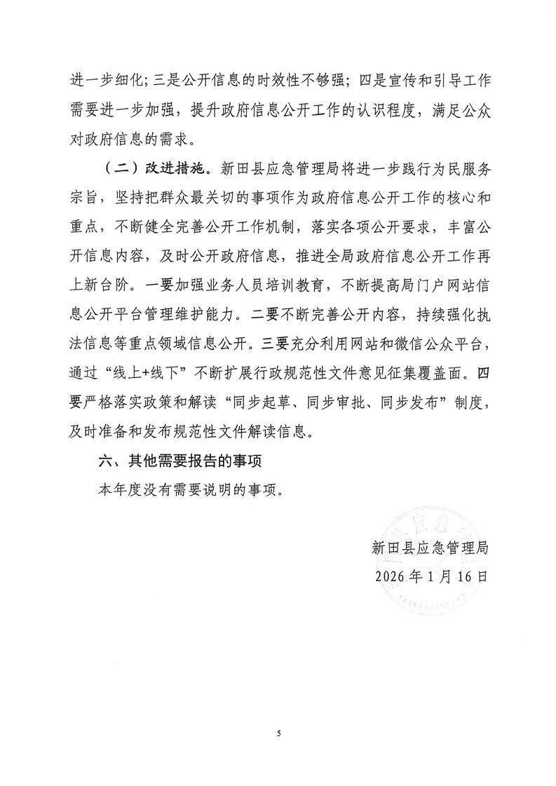 新田县应急管理局2025年度政府信息公开工作报告