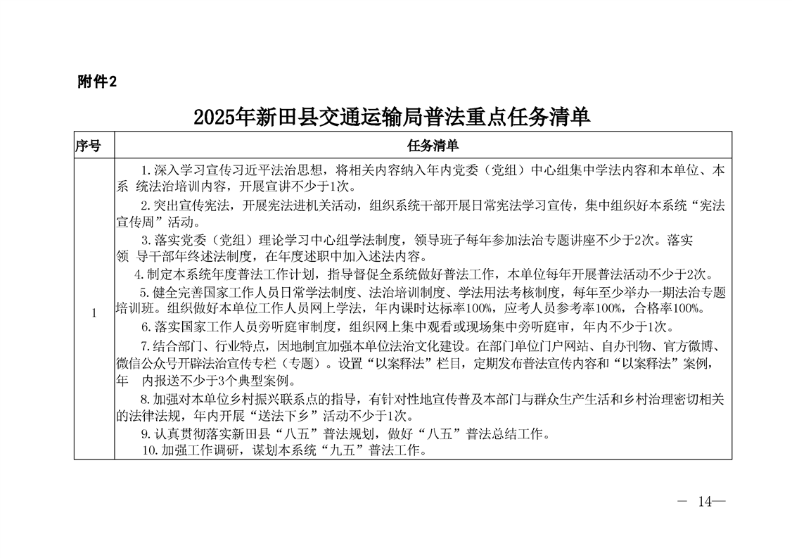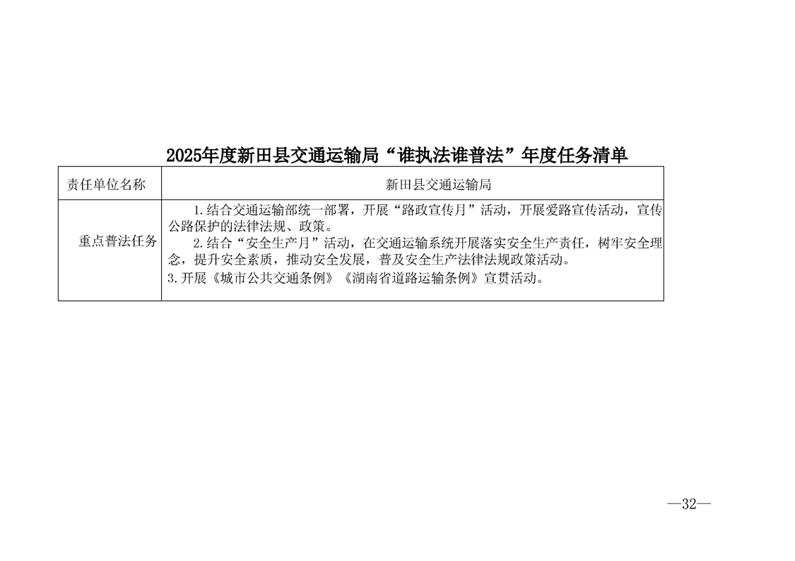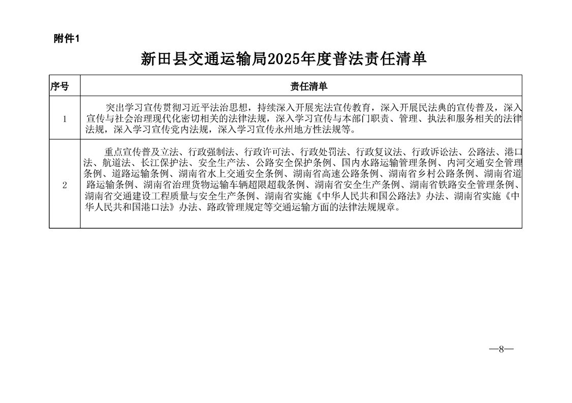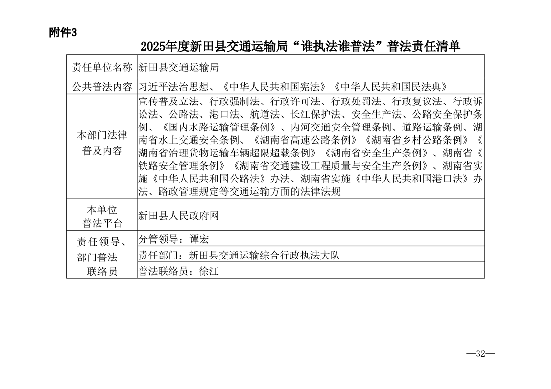 新田县交通运输局2025年度普法责任清单