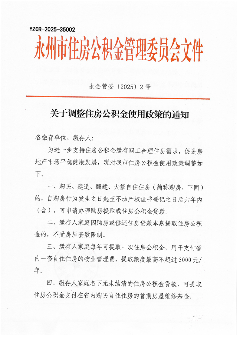 永金管委〔2025〕2号---关于调整住房公积金使用政策的通知