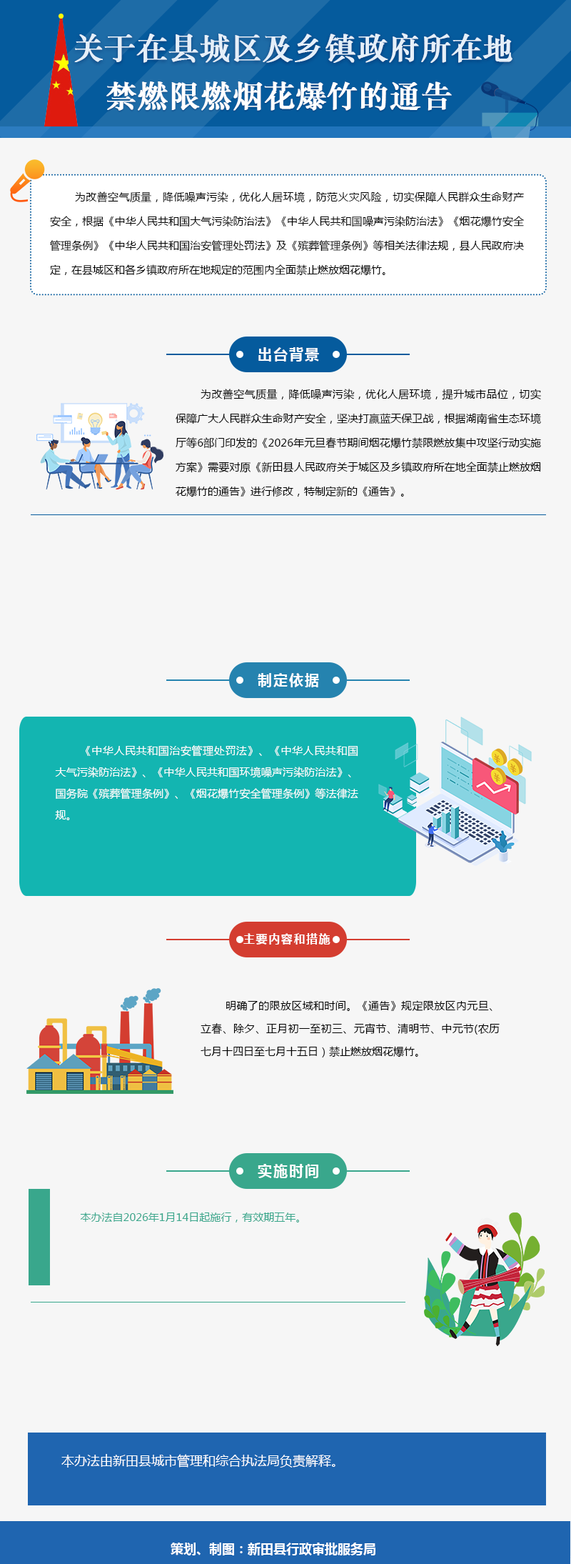H5解读:《新田县人民政府关于在县城区及乡镇政府所在地禁燃限燃烟花爆竹的通告》