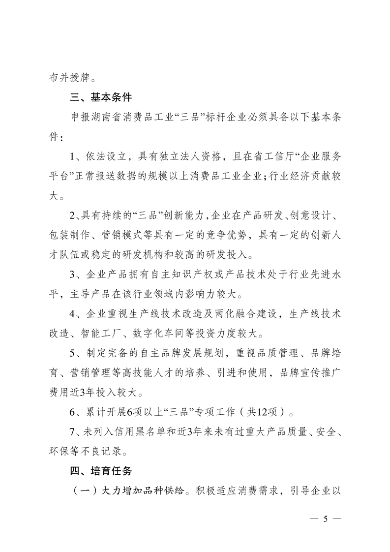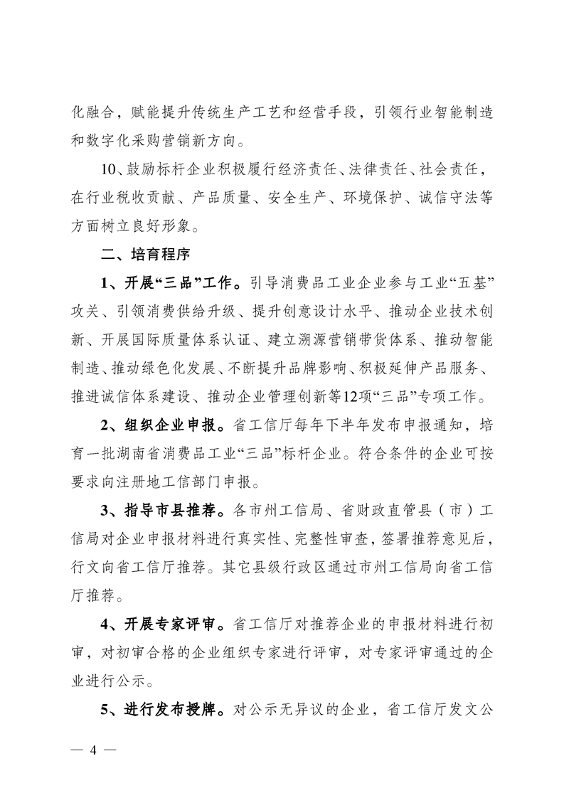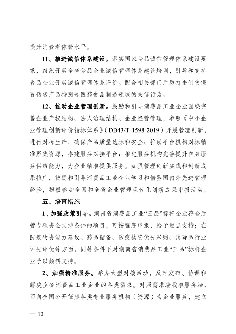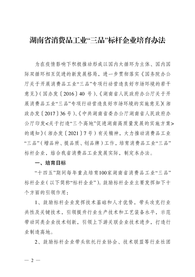 关于印发《湖南省消费品工业“三品”标杆企业培育办法》的通知