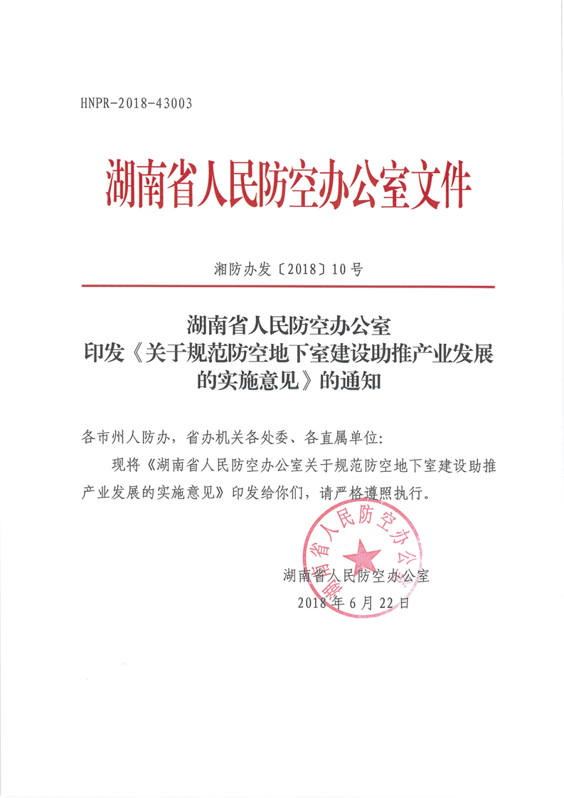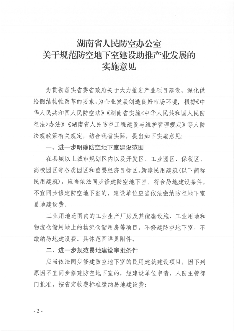 湖南省人民防空办公室印发《关于规范防空地下室建设助推产业发展的实施意见》的通知