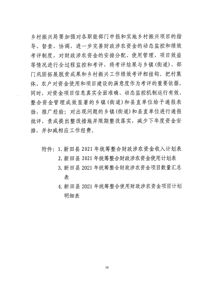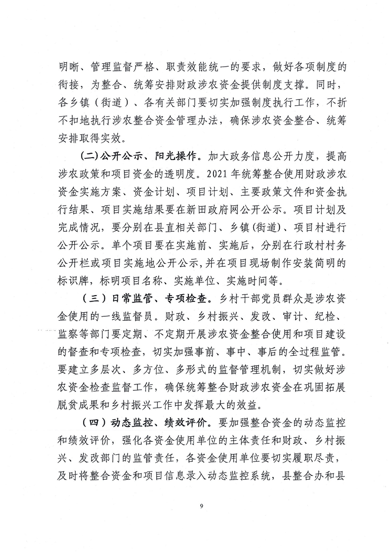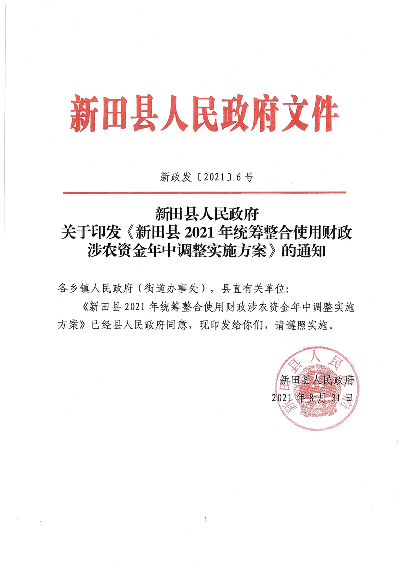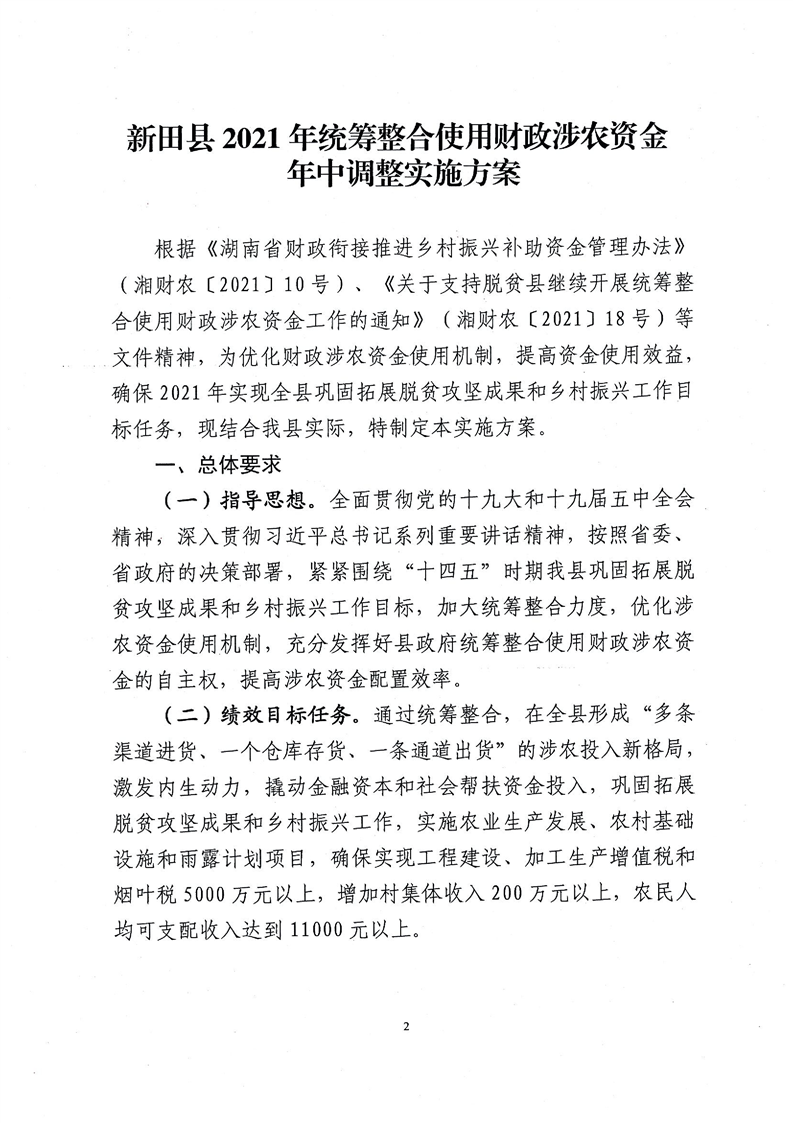 新田县2021年统筹整合使用财政涉农资金年中调整实施方案