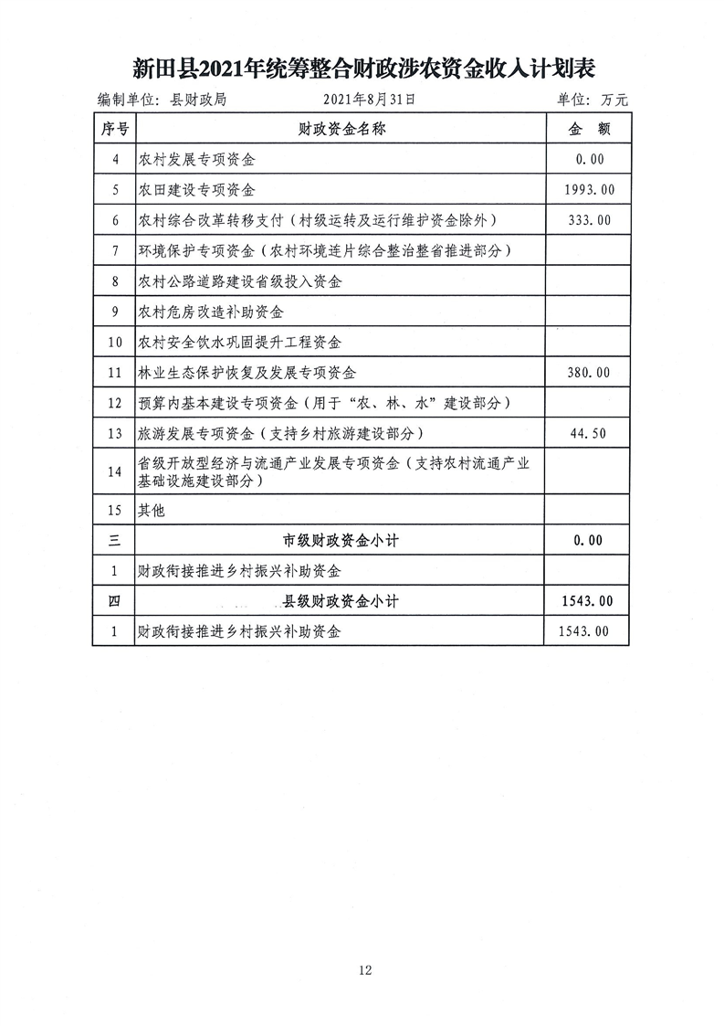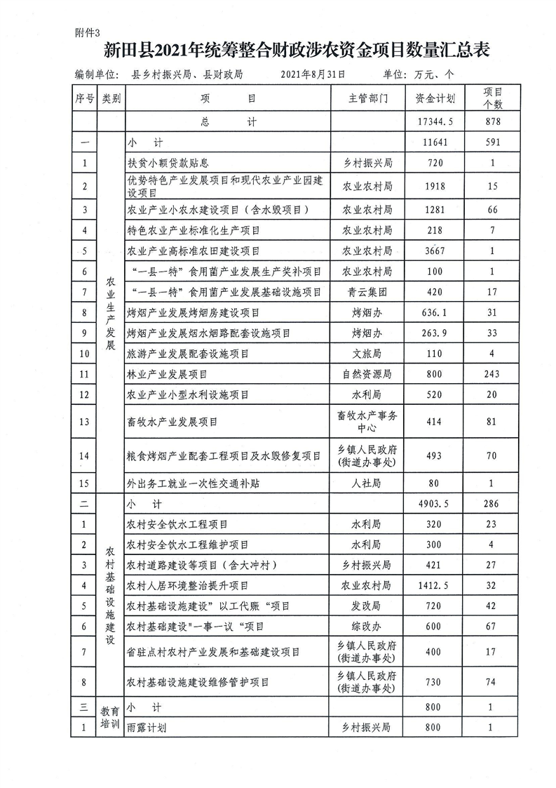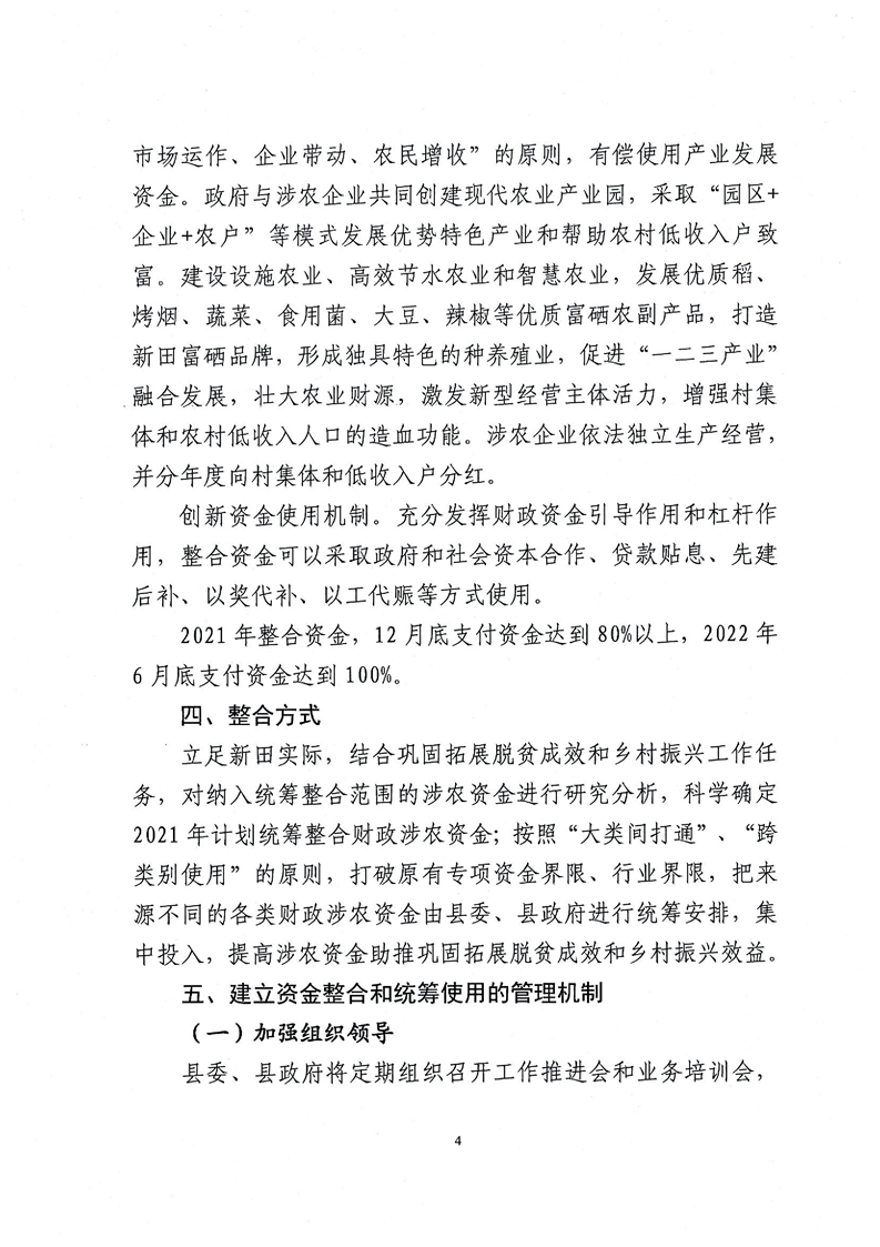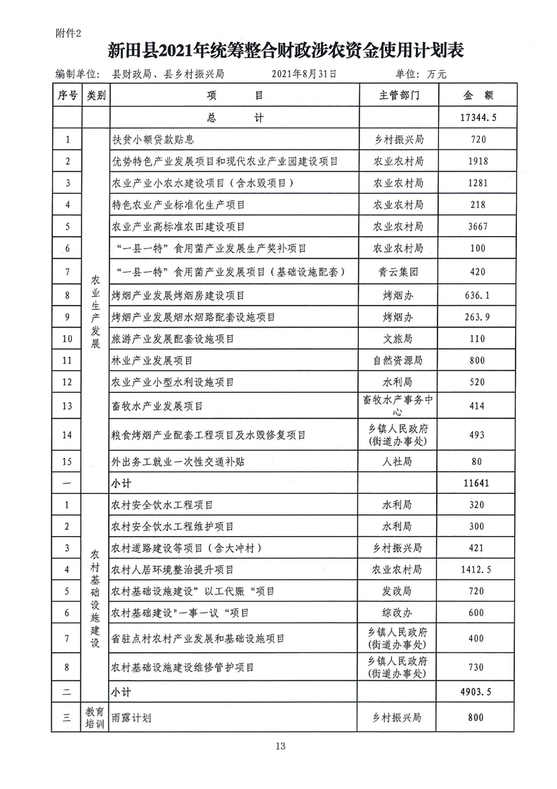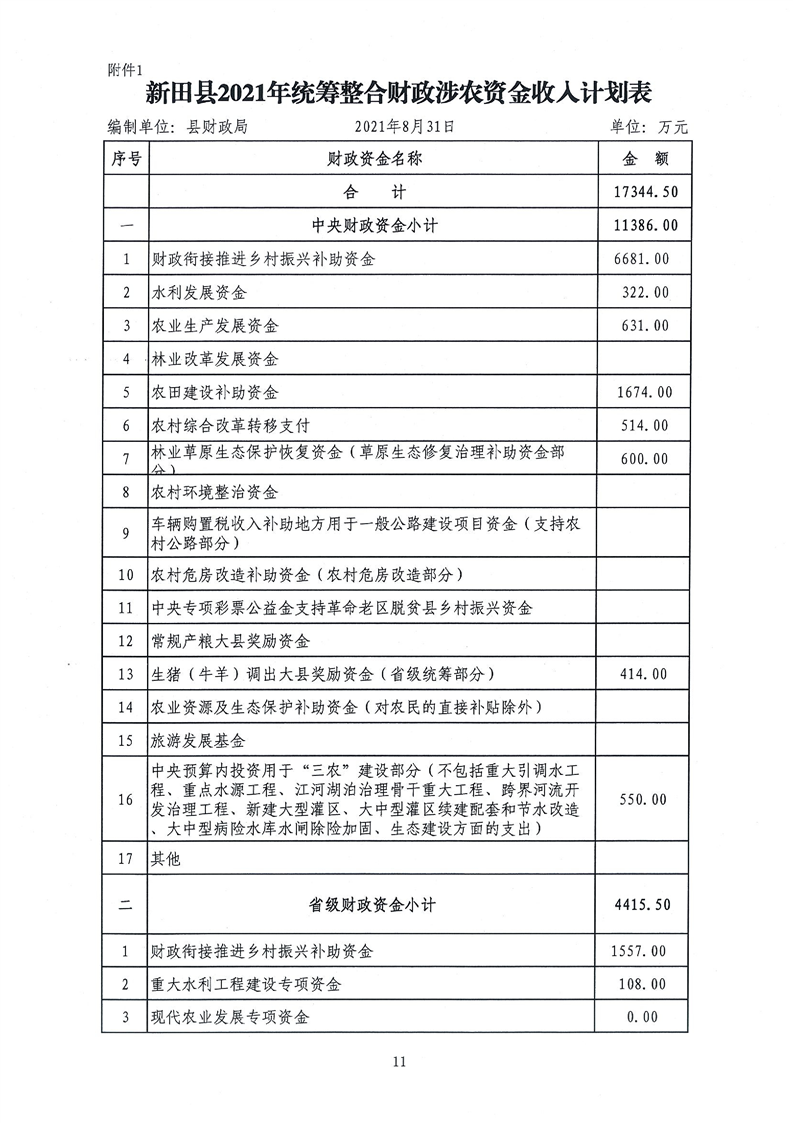 新田县2021年统筹整合使用财政涉农资金年中调整实施方案
