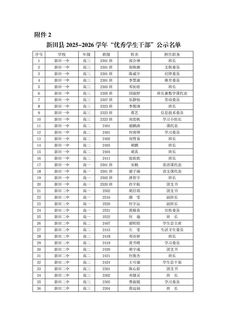 关于2025-2026学年度县级三好学生、优秀学生干部及先进班集体评选结果的公示