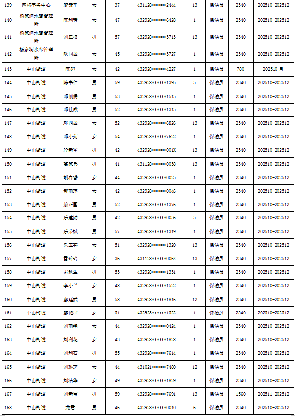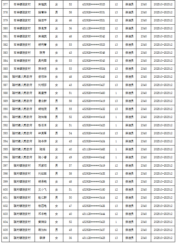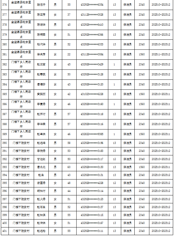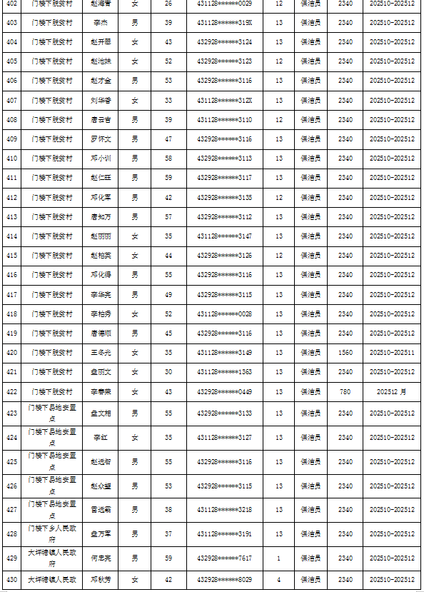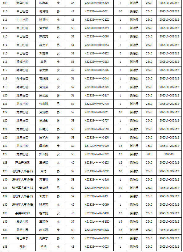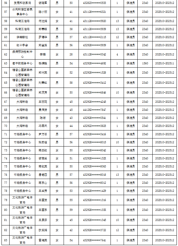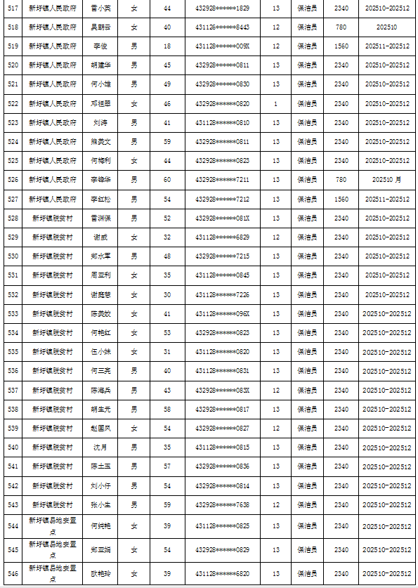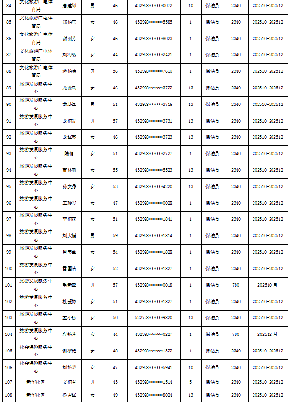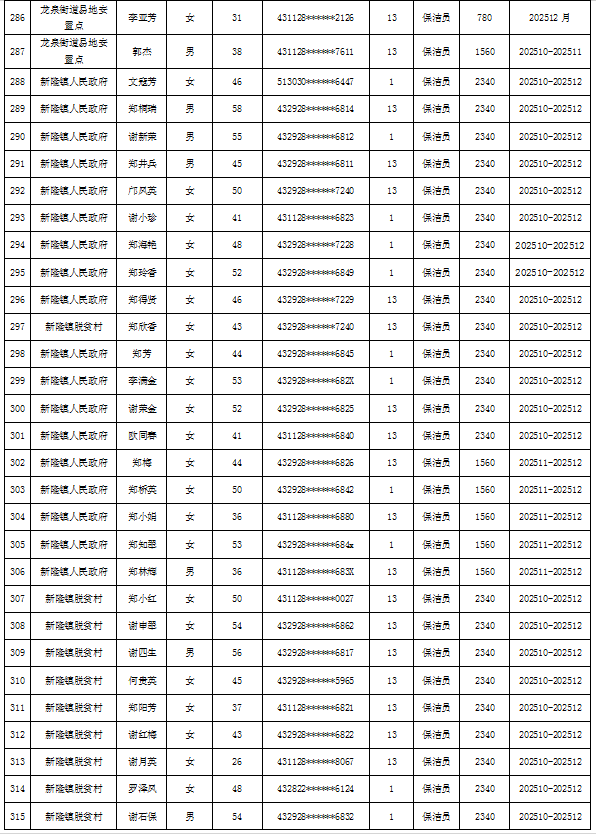 为加强我县公益性岗位监督管理,根据《新田县公益性岗位开发管理经办规程(试行)的通知》(新人联发〔2024〕8号),现将新田县2025年第四季度公益性岗位从业人员补贴名单(见附件)公示,公示期7天。如有异议请向新田县就业服务中心等相关部门反映情况。