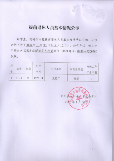 提前退休人员基本情况公示