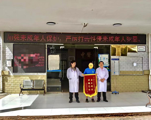 新田卫健网(通讯员 唐小敏)4月14日,骥村镇卫生院上演了温馨一幕。患者胡大叔将一面写有“医术精湛 医德高尚”的锦旗送到医护人员手中,以此表达对卫生院全体医护人员的感激之情。