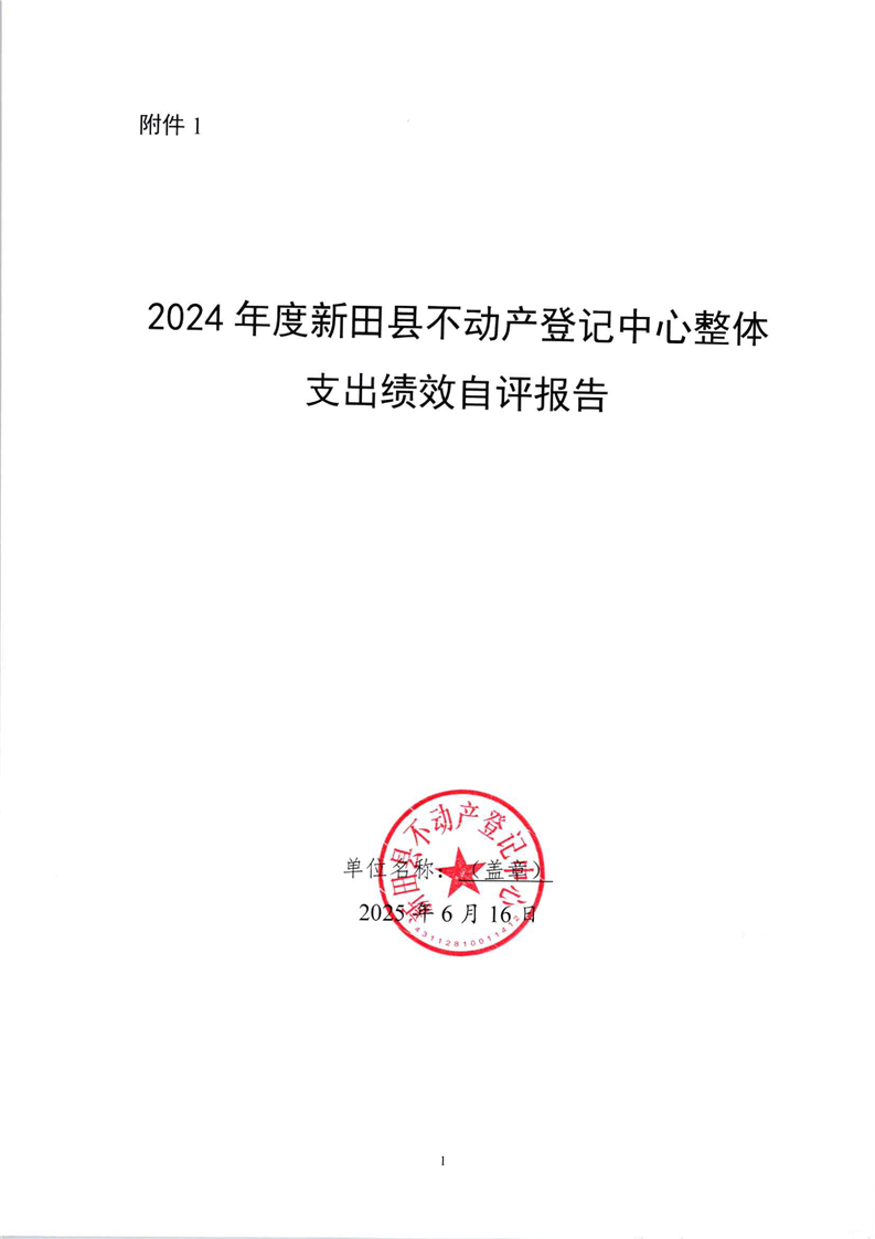 2024年度新田县不动产登记中心整体支出绩效自评报告