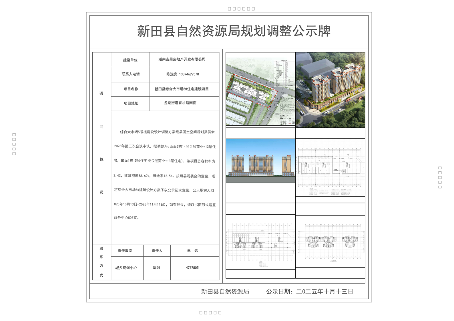 新田县自然资源局规划调整公示(综合大市场5号楼)