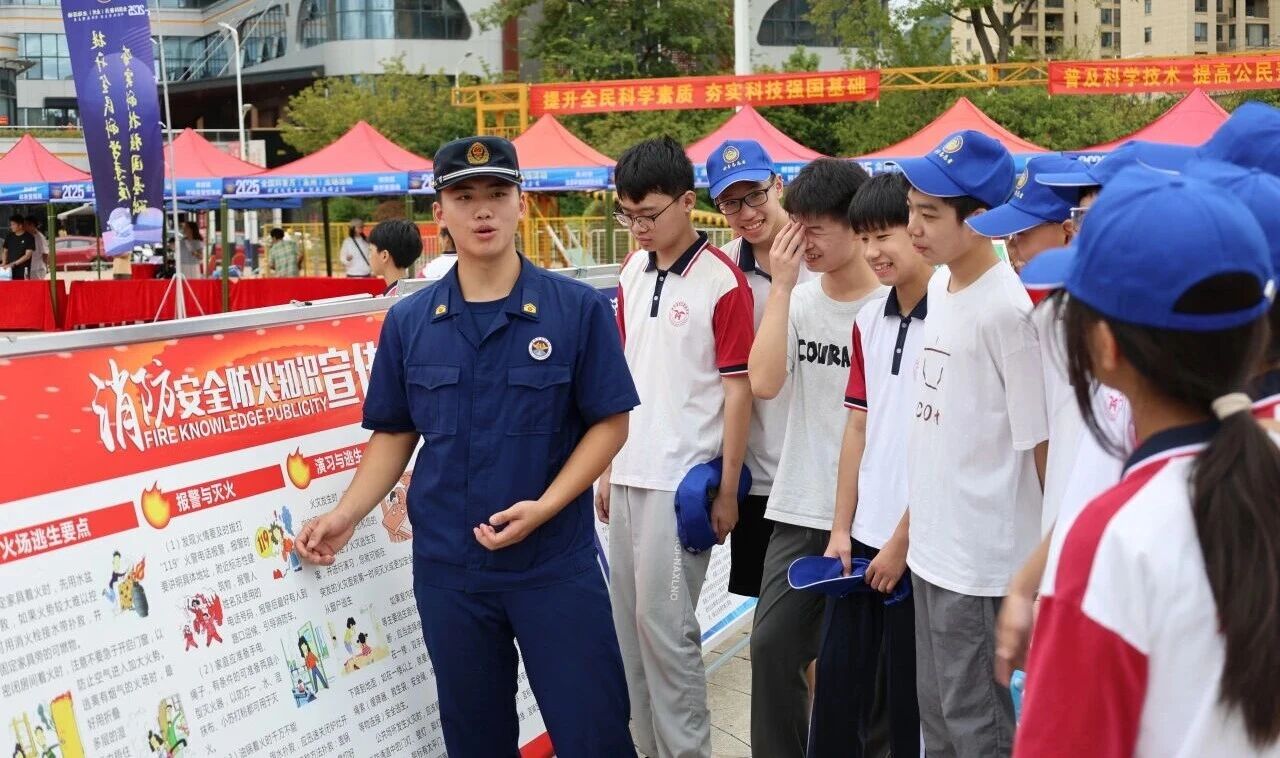 科技专家团队现场宣传《中华人民共和国科学技术普及法(修订版)》及《中华人民共和国宪法》等法律法规,围绕科技创新、国防国安、防震救灾等领域提供专业咨询,还赠送科普物资,弘扬科学精神与爱国奉献精神。