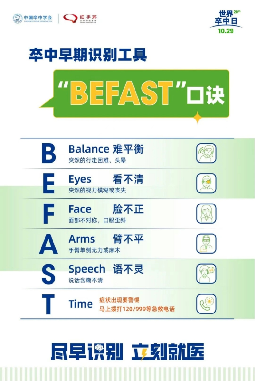 牢记两个简单口诀——“中风120”和“BEFAST”,就能在关键时刻迅速识别征兆,为家人或自己争取宝贵的救治时间!