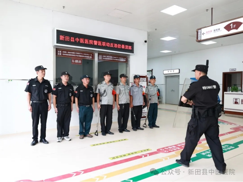 为进一步推进平安医院建设,加强警医联动机制的落实,提升突发事件快速响应和应急处置能力,保护医院职工及人民群众的生命财产安全,2024年8月6日下午,新田县中医医院与县公安局巡特警大队、反恐大队开展警医联动反恐防暴演练及专题培训。