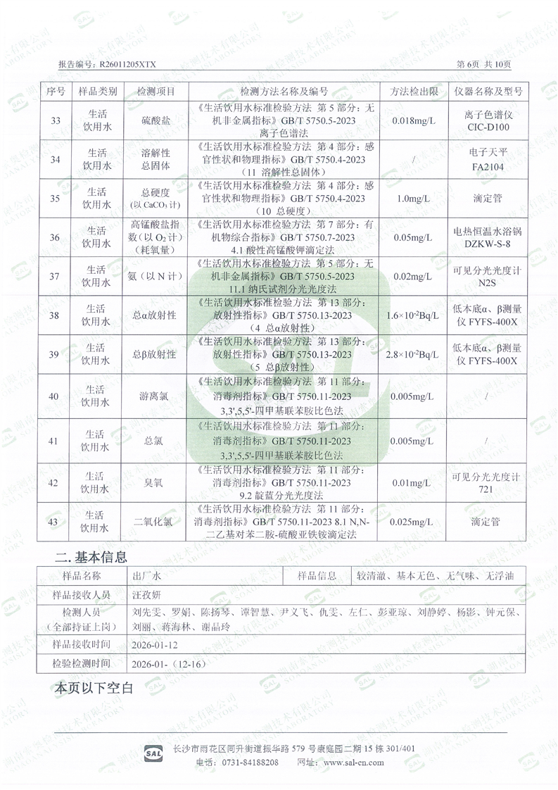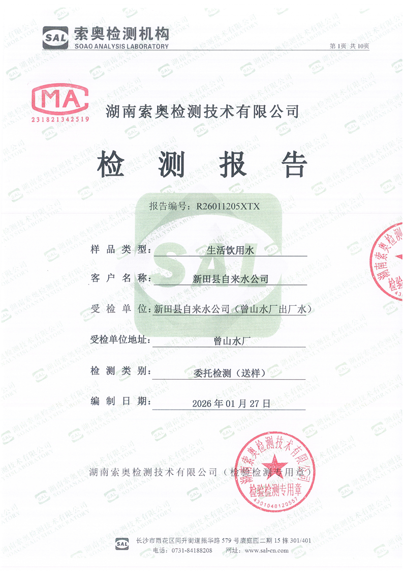 新田县2026年1月城区供水水质简报