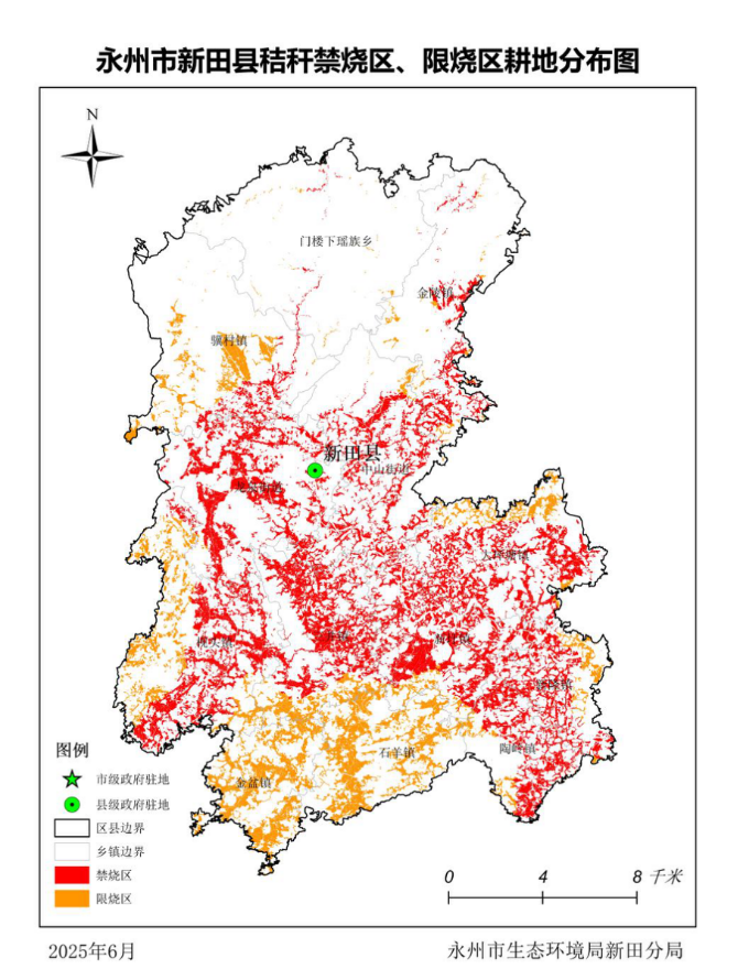 永州市新田县秸秆禁烧区、限烧区汇总表