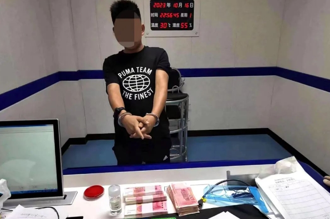 根据线索,保亭县公安局立即组织警力开展侦查,经多日勘察蹲守,当嫌疑人邱某来到澄迈县某宾馆,在完成交易之际,蹲守在附近的民警迅速行动将其控制,并在停车场将藏在车内的邱某同伙薛某抓获。