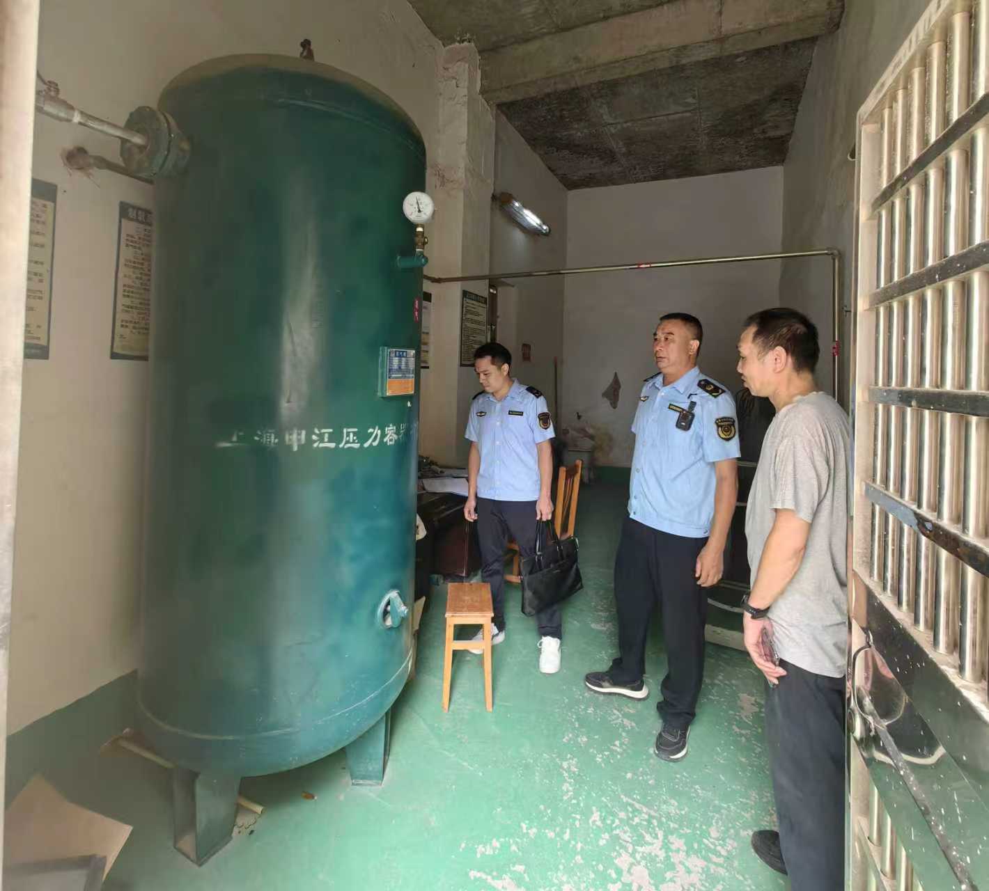 在检查过程中,执法人员检查发现一家医院在用的压力容器(储氧罐)已超期未检,执法人员当场下达特种设备安全监察指令书,制止了当事人违法使用行为,同时对相关人员进行调查询问。